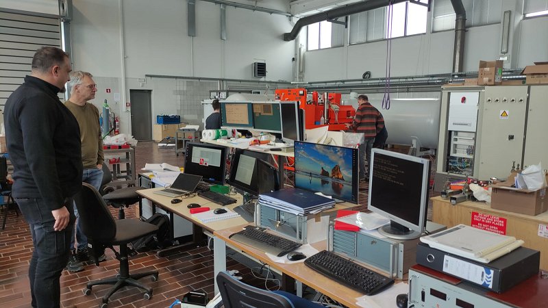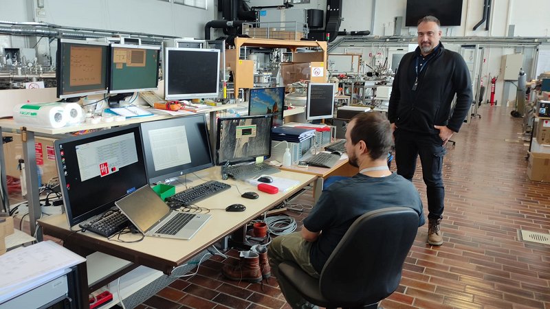 The accelerator upgrade is almost finished, and today the first tests with an ion beam at high accelerating voltage are under way. The high voltage is now being very successfully stabilized via the GVM (Generating Volt Meter) and a feedback loop. On the high-energy side of the accelerator, the beam profile can be observed using a dedicated device (Profile Monitor). At the same time, the operation of the electrostatic lenses (which shape the beam), the electrostatic steerer (which controls steering in the vertical plane), and the switching magnet (which directs the beam horizontally into the selected beamline) is also being verified on the high-energy beam. The testing is conducted in cooperation with a representative of the manufacturer and under the careful supervision of the official Slovenian authorities for protection against ionizing radiation. In a positive scenario, we can expect the first beam for regular users before the end of January.