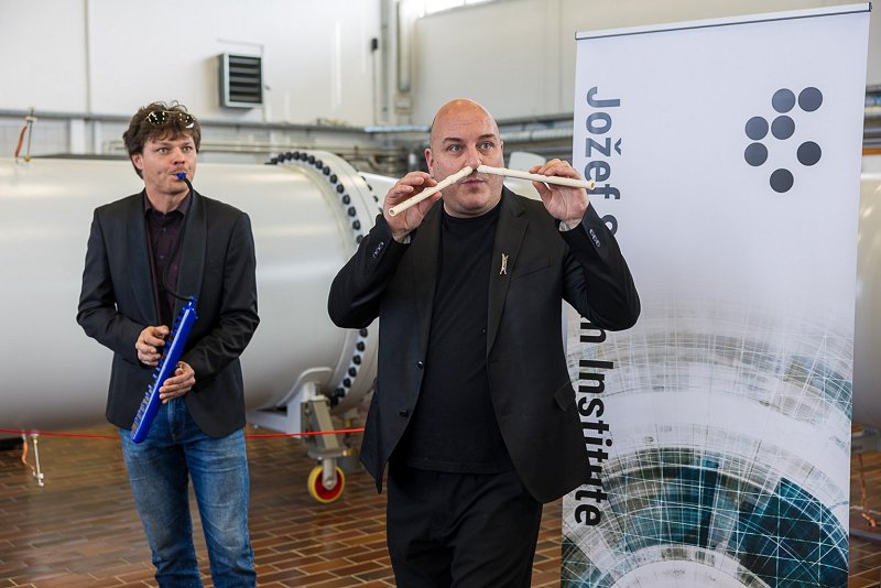 V Reaktorskem centru Instituta Jožef Stefan smo tudi uradno zagnali nov najsodobnejši tandemski ionski pospeševalnik Tandetron, edini tovrstni raziskovalni pospeševalnik v Sloveniji, ki zdaj omogoča precej višjo delovno napetost - tri milijone voltov - in zato natančnejše raziskave, analize ter tudi modificiranje materialov. Kot je v osrednjem nagovoru poudaril Primož Pelicon, vodja MIC, bo novi pospeševalnik nadomestil prejšnjega, ki je deloval od leta 1997, ter nadaljeval dolgo tradicijo raziskav z ionskimi žarki na IJS, ki sega v leto 1956. Izpostavil je nekaj aplikacij, kot so raziskave materialov za fuzijske reaktorje, baterije, uporaba v biomedicini ter biologiji, izdelava kvantnih senzorjev ter analiza kulturne dediščine. Po ocenah raziskovalcev in predstavnikov države bo naprava bistveno izboljšala raziskovalne pogoje ter okrepila vlogo IJS v mednarodnih raziskovalnih povezavah. Pospeševalnik sta otvorila Tjaša Dobnik, direktorica Arisa, in Leon Cizelj, direktor IJS, dogodek je popestril Boštjan Gombač z izjemnimi glasbenimi miniaturami. Fotografiral je Marjan Verč.